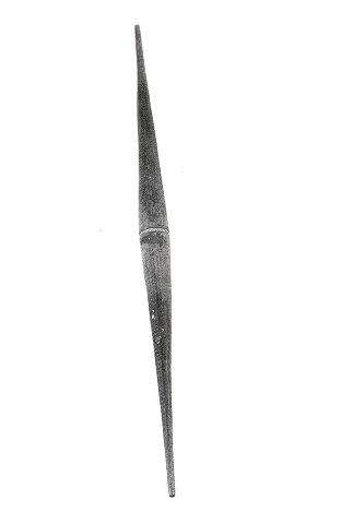 Värttinä, jolla kehrättiin lapinraanun SU 5668:- kudelanka. Edellistä huomattavasti sirompi puupuikko, keskeltä huomattavasti paksumpi, keskellä myös värttinän ympäri käypä uurre. Päät hyvin suipot ja sinisiksi värjätyt.