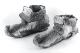 Ruskeanharmaista koipinahoista tehdyt tavallisen malliset, tereettömät nutukkaat. Jalkineen suuta kiertää kauttaaltaan n. 5 cm korkea sisnanahkainen kaistale, joka iltin kohdalla on n. 7,5 cm korkea.