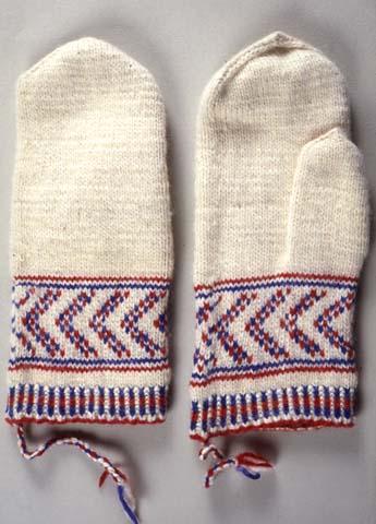 Vanttuut, kudottu värttinällä kehrätystä lampaanvillasta, uudet, valkaistut. Ostolankaa ovat vain kuvio-osan värilangat, jotka on huolella valittu. Koristemalli on vanha perinteinen Petsamon siidan malli: venemalli, jossa aiheena veneenkaaret. Suukuviokin ilmeisesti perinteisesti petsamonkyläläinen. Myös koristevärit punainen ja sininen perinteisesti Petsamon siidan tyyliä. Koristeosan korkeus 10 cm. Vanttuissa 12 cm pitkät koristelangoista tehdyt ripustuspunokset.