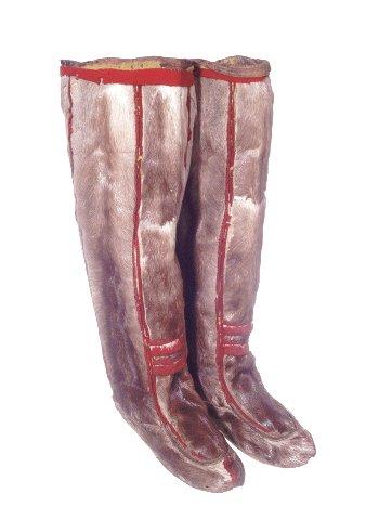 Poroturkissaappaat, anturanahalla pohjatut, erillinen korkonahka. Kärki hyvin lievästi kiverä, jalkaosan sivun korkeus 5 cm. Varsi ylöspäin levenevä. koristelu "saamelaistyyppinen". Varsi koostuu viidestä turkiskaitaleesta, joiden välisaumoissa punaiset verkatereet. Jalan päälle tulevassa kaitaleessa nilkan kohdalla neljä poikittaista punaista verkaterettä. Suussa kulkee nahkainen kurenyöri nahasta ommellun kujan sisällä; sen alapuolella keltainen ja punainen verkatere. Suun takaosassa lyhyt halkio.