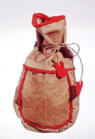 Pussi koostuu yläosasta, etu- ja takakappaleesta sekä yhdestä sivukappaleesta. Saumoissa on punaiset verkatereet. Yläosan saumaan kiinnitetty nahkasta punotut kurenyörit. Varustettu Sami Duodji -tuotemerkillä.