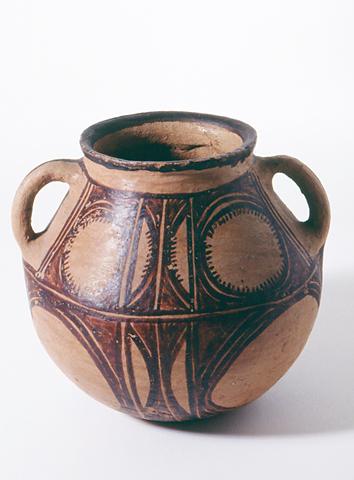 Punasavesta käsinrakennettu kaksikorvainen tasapohjainen ruukku (berb. thakdrårt), jonka maha on alaosasta pyöreä ja yläosasta kartiomainen. Matalan ja kapeahkon kaulan jälkeen suun reuna kääntyy hieman ulospäin. Astian pinta on kiillotettu ja kuvioitu tummanpunaruskealla pigmentillä geometrisin kuvioin. Tumma tausta rajaa neljä pienempää ympyrää ylös ja neljä suurempaa alas. Pystysuunnassa ympyröiden väliin rajatuilla alueilla on vastakkain kaksi kapeaa ulkoreunalta tasaista, sisäreunalta kuperaa kuviota. Ylemmissä kuvioissa - sekä ympyröissä että niiden välisissä kuvioissa - on sisäänpäin sojottavia piikkejä.