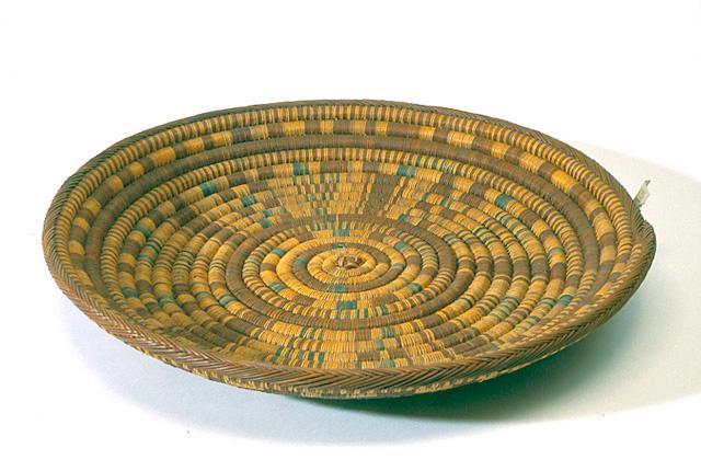 Kasvinjuurista nauhatekniikalla punottu laakea vatimainen tarjotin (berb. isuggi, diminut. tisuggit). Tummanruskeilla kuiduilla on astiaan punottu selviä keskustasta reunoille suuntautuvia säteitä. Kuvioinnissa on myös käytetty vihreitä kuituja.