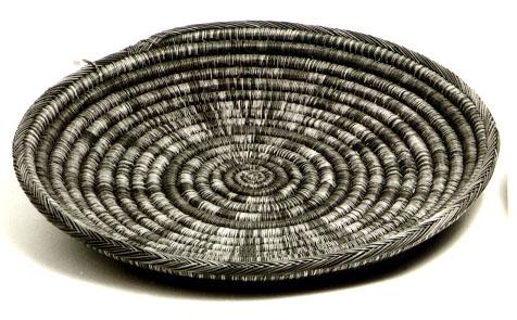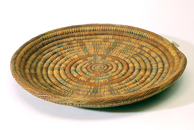 Kasvinjuurista nauhatekniikalla punottu laakea vatimainen tarjotin (berb. isuggi, diminut. tisuggit), jossa on vihreillä ja ruskeilla kuiduilla punottu keskustasta lähtevä säde- ja spiraalikuviointi. Värit ovat haalistuneet, ja pinta on tummunut.