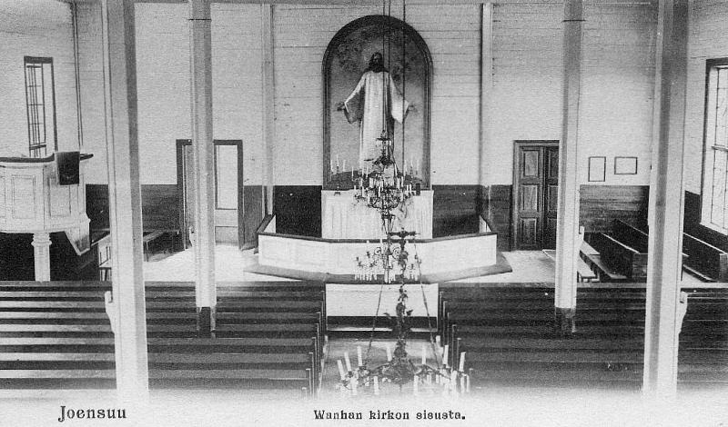 | postikortti: Joensuun vanha kirkko, interiööri |