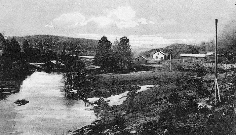 | postikortti: Jylhävaaran puuhiomo Syskyänjoen yläjuoksulta nähtynä |