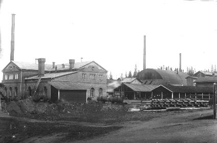 Enson puuhiomo ... savupiippu, teollisuusrakennukset, tehtaat |
