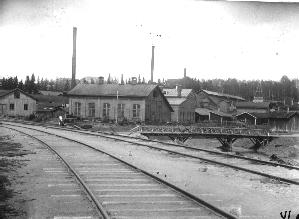 | valokuva: Värtsilän tehdasaluetta ja junanrataa |