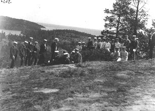 | valokuva: Karjalaisen osakunnan jäseniä Kaarnesaaren laella |