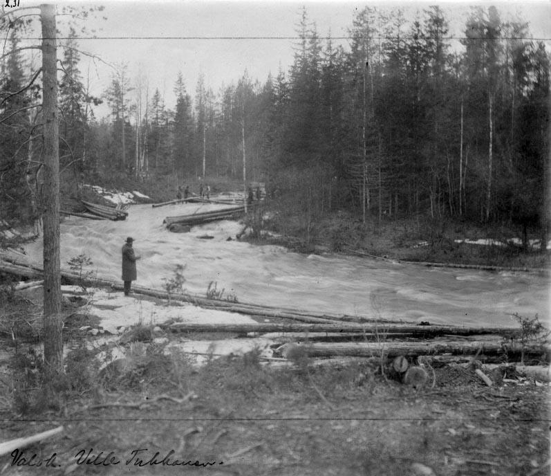 | valokuva: uittoa Särkkälänkoskessa Juuanjoessa Turunkankaan kohdalla |