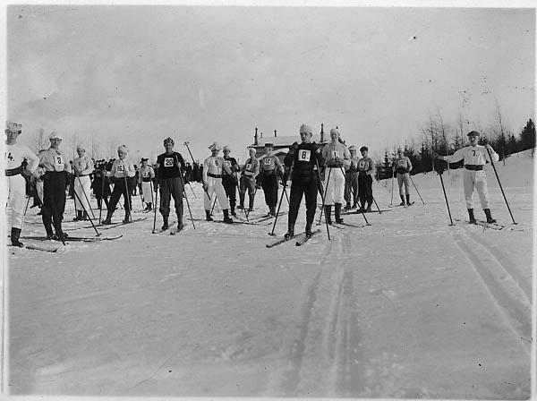 | valokuva: seminaarilaisia lähdössä hiihtämään kilpaa |