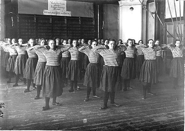 | valokuva: seminaarin naisoppilaat voimistelemassa |