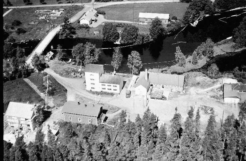Kuvassa etualalla meijeri. Vasenmmalla edessä isännöitsijän talo ja toimista rakennus. Taempana korkeampi rakennus on mylly. Rakennusten takana virtaa Tainoinvirta ja vasemmalla vanha puinen silta joen yli.