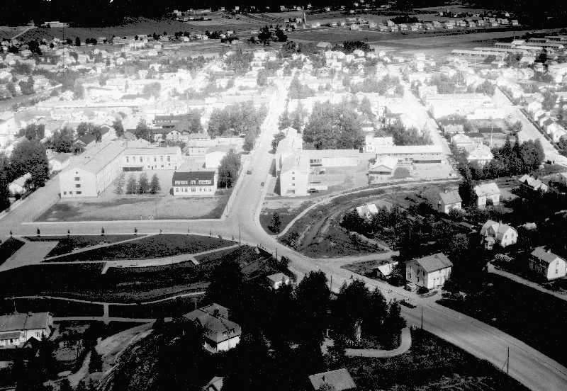 Kuvassa vasemmalla oleva iso koulu on Salon Yhteislyseo, myöhemmin peruskoulun tultua (1976/-77) Hermannin koulu.