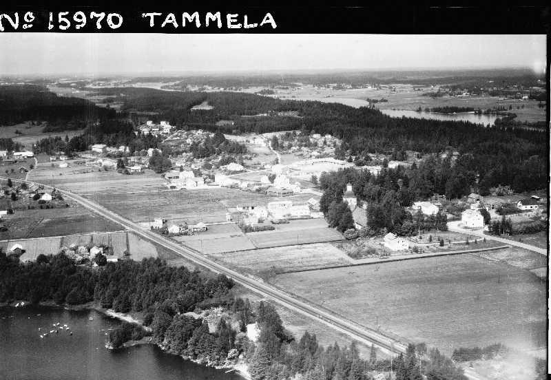 Kuvassa näkyy Tammelan kirkonkylää ja oikealla Tammelan harmaakivikirkko.