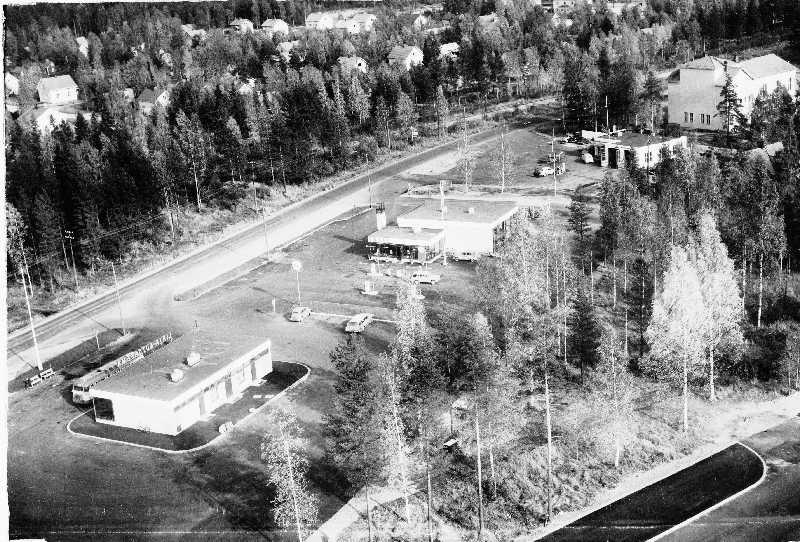 Vasemmalta oikealle: Linja-autoasema, Shellin huoltoasema, Esson huoltoasema ja Työväentalo.