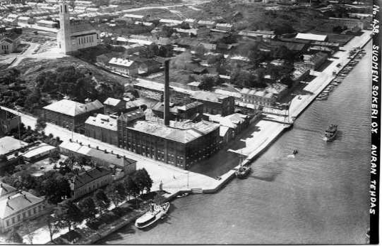 | ilmavalokuva: Turku, Suomen Sokeri, Auran tehdas |