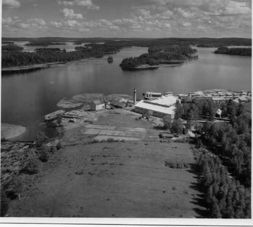 ilmavalokuva: Ruovesi, Visuvesi, Visuvesi Oy:n vaneritehdas ja saha (per