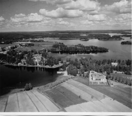 | ilmavalokuva: Ruovesi, Visuvesi, näkymä järvelle, kanava?, asutusta, taustalla Visuvesi Oy?Kuvaaja T |