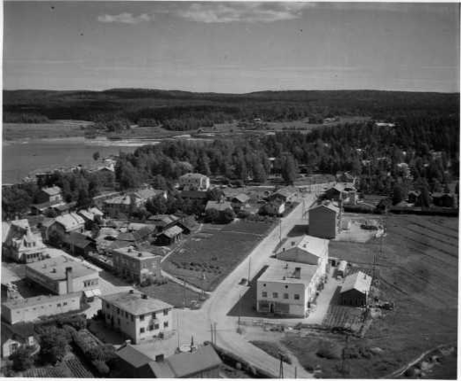 | ilmavalokuva: Suolahti, liikerakennuksia, asuinrakennuksia pihapiireineen |