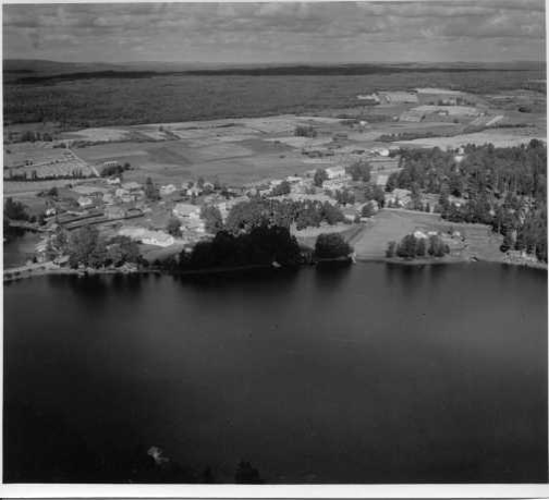 | ilmavalokuva: Joutsa, näkymä veden (Angesselkää?) yli Joutsan kirkonkylään, oikealla häämöttää kirkko (Heikki Salo 1812-13) |