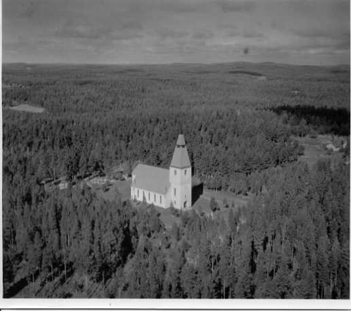 | ilmavalokuva: Karttula, kirkko metsän keskellä |