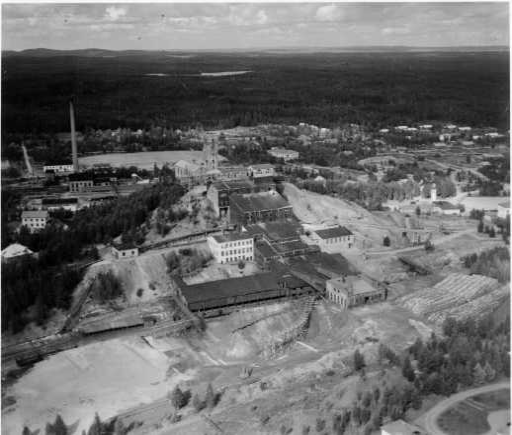 | ilmavalokuva: Outokumpu, Outokumpu Oy:n kaivosaluetta rakennuksineen |
