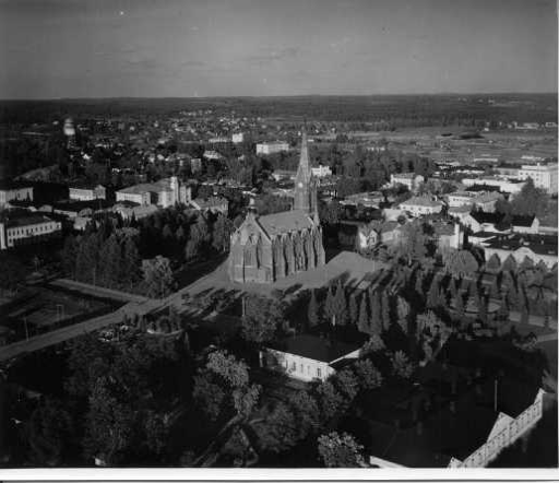 | ilmavalokuva: Mikkeli, tuomiokirkko (Josef Stenbäck 1896-97), kaupungin asutusta |