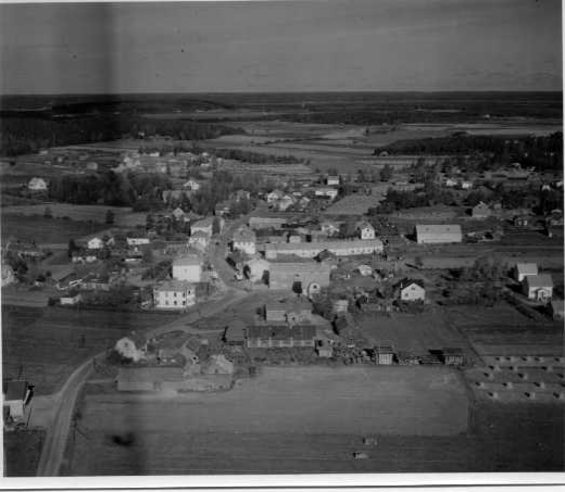 | ilmavalokuva: Iitti, Kausala, maalaistaloja ulkorakennuksineen, omakotitaloja, liikerakennuksia, peltoa, metsäsaarekkeita |