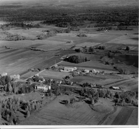 | ilmavalokuva: Tuulos, kirkonkylää, asuin- ja liikerakennuksia, mahdollisesti teollisuusrakennuksia, kirkko ( 1480), laajat pellot, järvi |