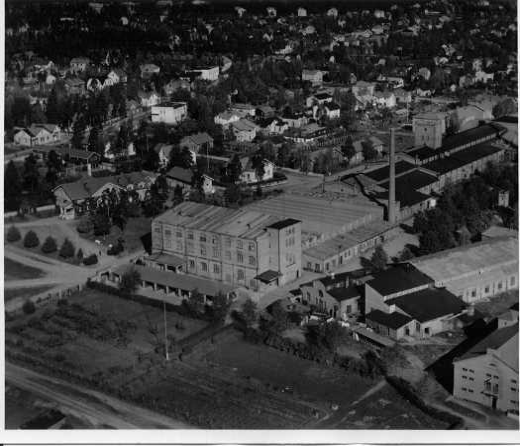 | ilmavalokuva: Hyvinkää, Yhtyneet Villatehtaat Oy: tehdasalue etualalla |