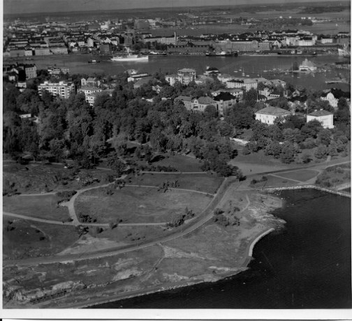 | ilmavalokuva: Helsinki, Kaivopuisto, Luoto, Eteläsatama, laivoja |