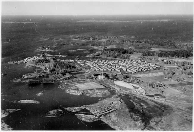 | ilmavalokuva: Haukipudas, Rauma-Raahe Oy, Halosenniemen saha (luettelon mukaan) |