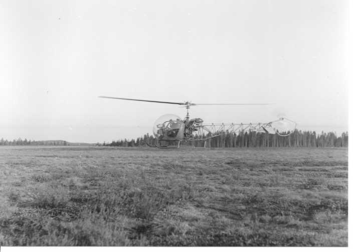 Suomen ensimmäinen helikopteri oli Imtran Voiman rekisteröimä Bell 47D-1, rekisteriltään OH-HIA, joka koottiin Kuorevedellä ja rekisteröitiin toukokuussa 1953. Ilmavoimat antoi kopterille tukikohtatilat Kuorevedeltä sekä asetti käyttöön niin ohjaajan kuin mekaanikon. Kopteria käytettiin pääasiassa IVO:n linjantarkastuslentoihin sekä vuosittain maksimissaan 30 lentotunnin verran Ilmavoimien tarpeisiin. Kopteri on nykyisin Suomen Ilmailumuseossa Vantaalla.