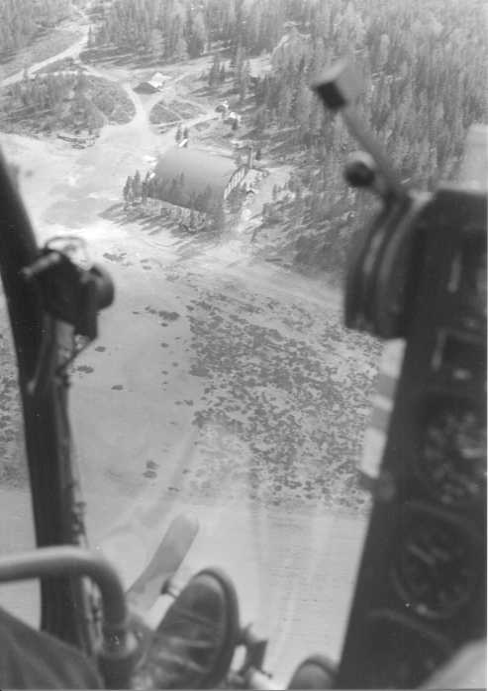 Kuva otettu Suomen ensimmäisestä helikopterista OH-HIA, todennäköisesti ensimmäisillä koelennoilla.