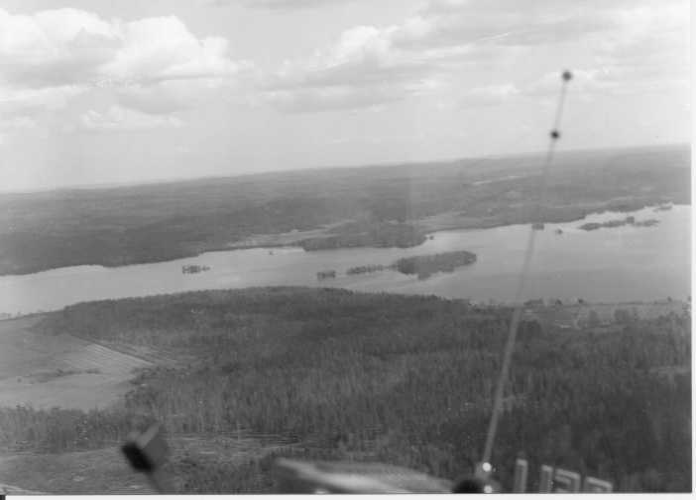 Kolhinselän Vehkosaari Hallin kylän tuntumassa kuvattuna helikoptersta OH-HIA (Bell 47D-1)