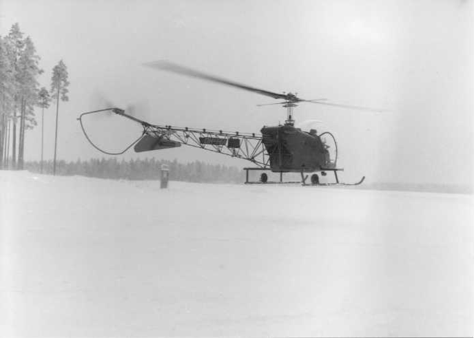 Suomen ensimmäinen helikopteri oli Imtran Voiman rekisteröimä Bell 47D-1, rekisteriltään OH-HIA, joka koottiin Kuorevedellä ja rekisteröitiin toukokuussa 1953. Ilmavoimat antoi kopterille tukikohtatilat Kuorevedeltä sekä asetti käyttöön niin ohjaajan kuin mekaanikon. Kopteria käytettiin pääasiassa IVO:n linjantarkastuslentoihin sekä vuosittain maksimissaan 30 lentotunnin verran Ilmavoimien tarpeisiin. Kopteri on nykyisin Suomen Ilmailumuseossa Vantaalla.