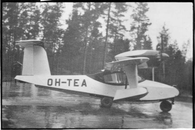 | ilmavalokuva: Kuorevesi, insinööri Eklundin kone OH-TEA Hallin kentällä |