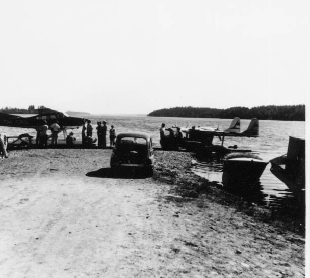 Vasemmalla Cessna A185E Skywagon OH-CBG, oikealla SIAI FN.333 Riviera OH-SRA. Kuvausajankohta sijoittunee välille alkukesä 1974 - loppukesä 1976, jolloin molemmat koneet olivat käytössä Jyväskylän seudulla.