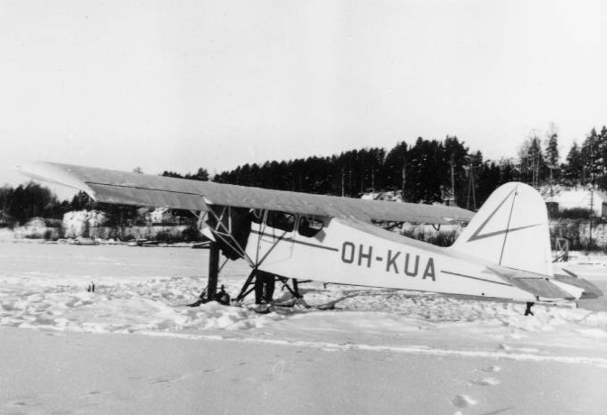 Karhu 48 -matkailukoneen toinen prototyyppi, joka valmistui helmikuussa 1949 ja rekisteräitiin Velj. Karhumäen nimiin tunnuksella OH-VKL saaden nimen "Tavi". Vuonna 1951 koneeseen vaihdettiin parempi siipi ja vuonna 1961 kone myytiin edelleen, jolloin kone sai uuden rekisteritunnuksen, OH-KUA. Tässä kuvassa kone on palannut toistamiseen jyväskyläläisen Soini W. Särkän omistukseen (syyskuussa 1969). Kone lensi Särkän käytössä vuoteen 1973 asti, jolloin se poistettiin rekisteristä. Kone on nykyisin näytteillä SUomen Ilmailumuseossa Vantaalla, alkuperäisin tunnuksin.