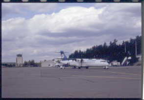 | ilmavalokuva: Tikkakoski, lentokenttä ja lentokone (Finnair) |