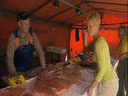 | lyhyt kuvaus | Nainen ostamassa kalaa. |