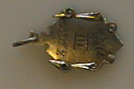 Valmistettu hopeavärisestä metallista. Etusivulla kaiverrus E.I.F. III 19 16. Takasivulla kaiverrus Höjd. Reunoissa kohokuvioina voluuttakiemuroita. Halkaisija 28 x 18 mm. Ripustusrengas.