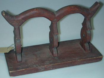 Tuolin pohja on suorakaiteenmuotoinen puulauta, johon on yhdistetty puutapein rullatuolin kolme pidikkettä. Pidikkeet on veistetty puukolla, profiloitu ja niiden keskellä on reikä lankarullan pitämistä varten. Pidikkeiden päällä on niitä yhdistävä profiloitu puu, joka on kiinnitetty puunauloin.
