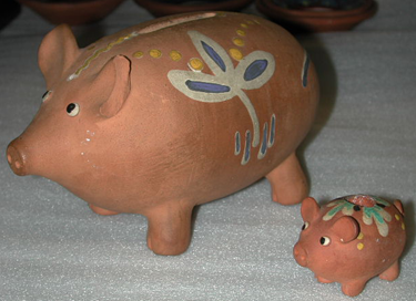 Pieni, punaruskea, lasittamaton. Selässä pyöreä kynttilänreikä. Ulkonevat korvat, saparo, pyöreät mustavalkeat silmät, kippurahäntä. Kynttilänreiän ympärille maalattu valkealla, vihreällä ja mustalla kuusenhavua muistuttava kuvio, jonka alapuolella on neljässä kulmassa kaksi keltaista pistettä alekkain, Neljä matalaa jalkaa, pohjaan uurrettu ML. Sisältä ontto.