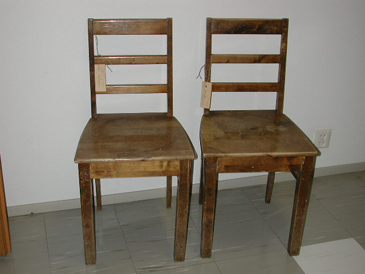 Rakenteeltaan yksinkertainen tuoli, jossa takajalat jatkuvat selkänojan sivutolppina. Selkänojassa on kolme vaakasuoraa välipuuta, joista ylin on levein. Istuinlevy levenee edestä. Etujalat ovat paksummat kuin takajalat. Sivuilla on välipienat. Tuoli on petsattu vihertävänruskealla petsillä ja lakattu selluloosalakalla.