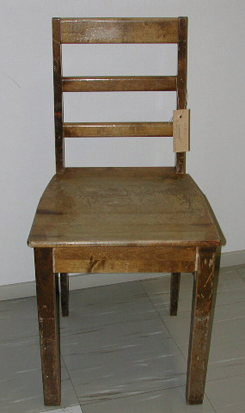 Rakenteeltaan yksinkertainen tuoli, jossa takajalat jatkuvat selkänojan sivutolppina. Selkänojassa on kolme vaakasuoraa välipuuta, joista ylin on levein. Istuinlevy levenee edestä. Etujalat ovat paksummat kuin takajalat. Sivuilla on välipienat. Tuoli on petsattu vihertävänruskealla petsillä ja lakattu selluloosalakalla.