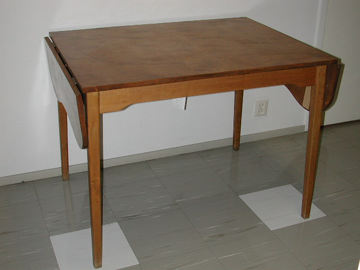 Yksinkertainen pöytä, jonka päissä on jatkolevyt. Pöydän jalat ovat suorat ja kapenevat hieman alaspäin. Suorakaiteenmuotoinen pöytälevy on päällystetty loimukoivuviilulla. Jatkolevyt on muotoiltu päistään kaarevan aaltomaiseksi. Mikäli jatkolevyt eivät ole käytössä, ne lepäävät pöydän päissä saranoiden varassa pystysuorassa. Käyttöön otettaessa ne saadaan vaakatasoon pöytälevyn alta vedettävillä tukilevyillä. Lakatun puun sävy on kellertävän vaaleanruskea.