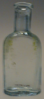 Pieni 8-kulmainen pullo. Korkki puuttuu.