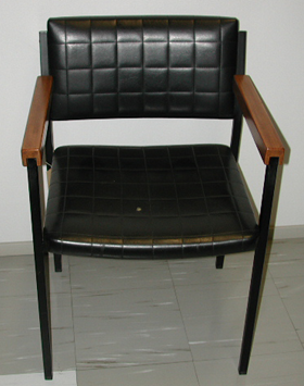 Yksinkertainen metallirunkoinen tuoli, jonka käsinojien yläpuoli on lakattua lehtipuuta. Jalat, sarjat ja käsinojat ovat mustaksi maalattua metallia. Istuinlevyn alapuoli on vaneria. Istuin- ja selkänoja on pehmustettu vaahtomuovilla ja päällystetty mustalla keinonahalla, jossa on tikkauskoristeompelu. Selkänojan molemmat puolet on verhoiltu.